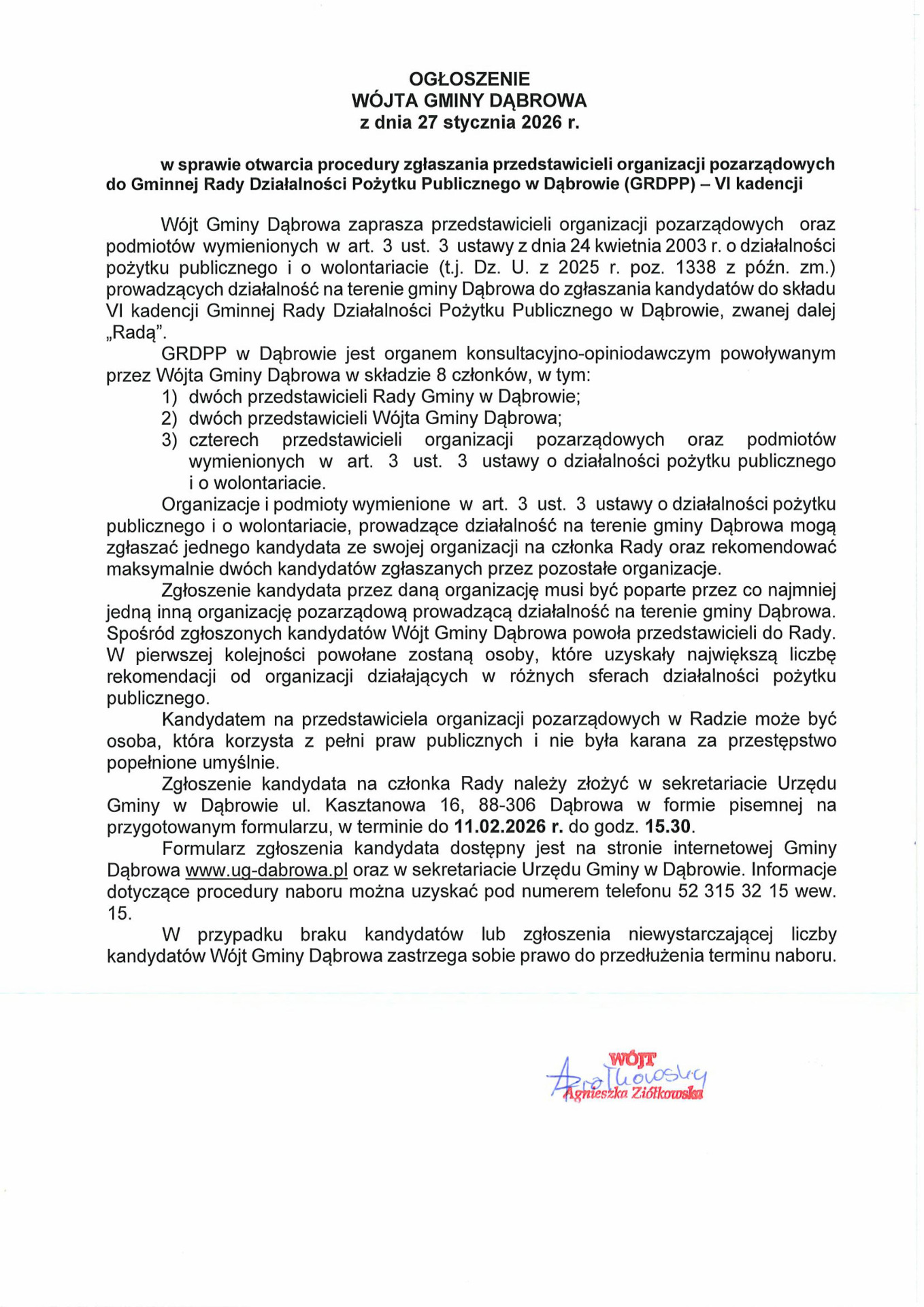 Wójt Gminy Dąbrowa